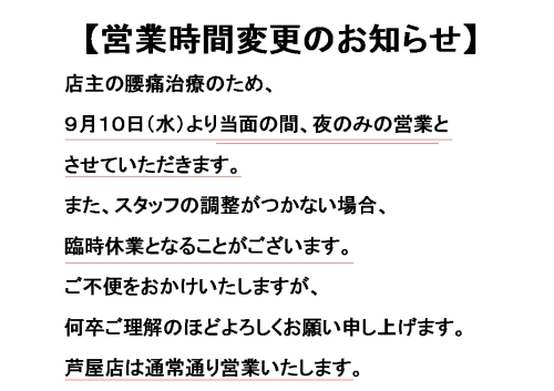 この度当店では、令和6年9月3日よりメニューの価格改定(値上げ)をさせていただきます。